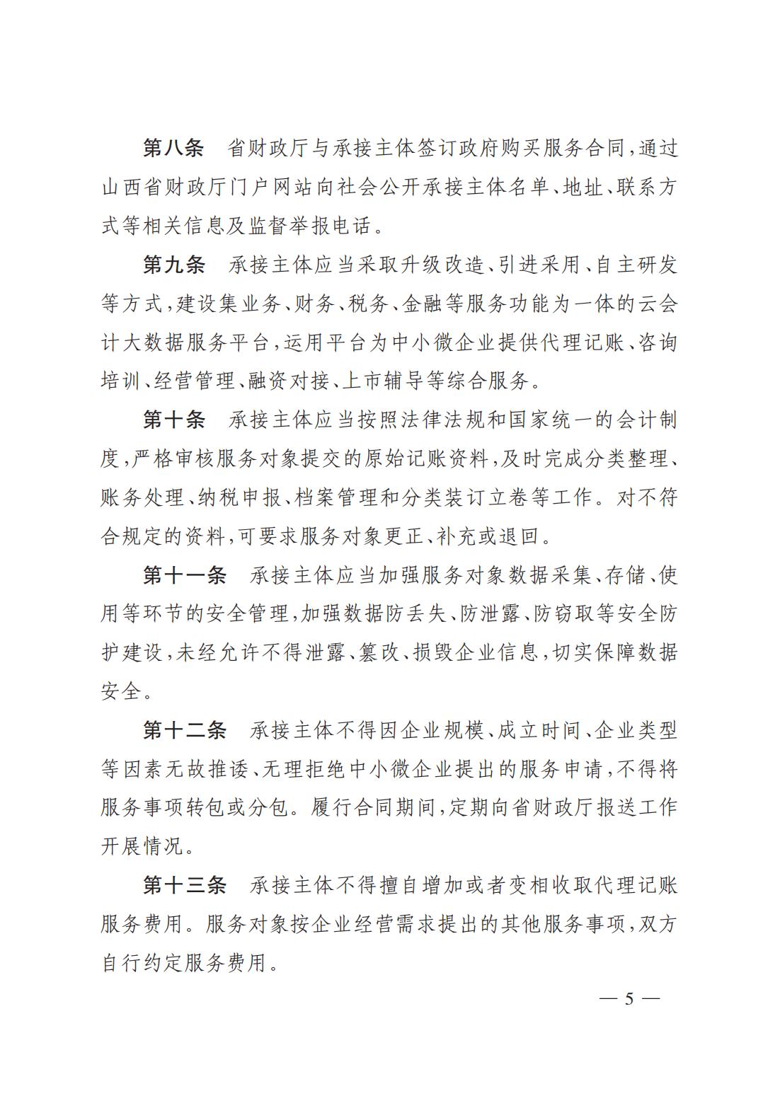關(guān)于印發(fā)《山西省財(cái)政廳為中小微企業(yè)購買代理記賬服務(wù)實(shí)施細(xì)則(試行)》的通知